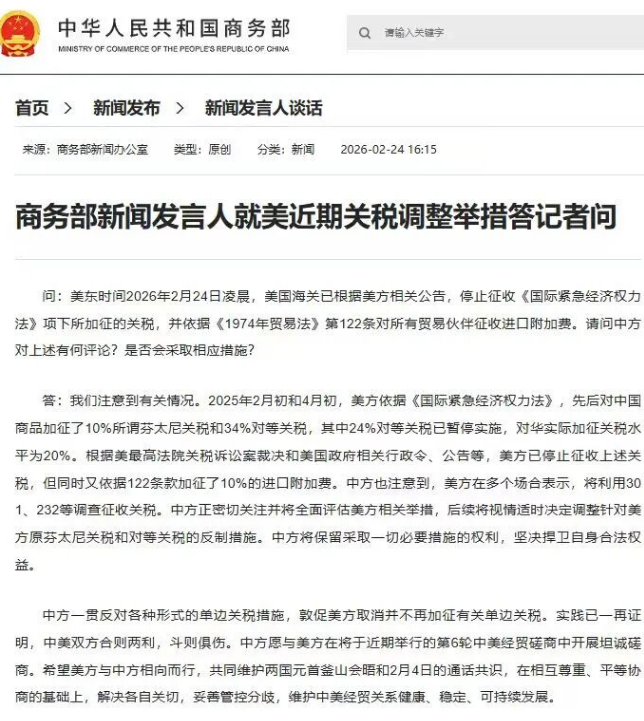 国际贸易专题 中方发声:将派特使访问中东 据央视财经,3月5日,外交部发言人毛宁主持例行记者会。 针对美国和以色列对伊朗发动... 2026-03-07国际贸易 越南/马来西亚等与美国达成贸易协议的国家,出口美国统一适用10%关税 越南、柬埔寨、马来西亚等与美国达成贸易协议的国家,其出口到美国的商品目前执行Section 122... 2026-03-04国际贸易 3月1日起,法国对小额包裹征收2欧元关税!97%商品来自中国 从3月1日起,法国正式对来自欧盟以外国家、价值低于150欧元(约1215元人民币)的包裹征... 2026-03-03国际贸易 最高143%!美国关税大棒砸向东南亚,对华光伏围堵升级 24日,美国商务部发布了一项备受关注的初步裁定,将对来自印度、印尼和老挝三国的太阳能产品征... 2026-02-27美国国际贸易 英国宣布史上最大规模涉俄制裁,包括39家中国企业 俄乌冲突四周年之际,当地时间2026年2月24日,英国宣布了近300项新的制裁措施,以打击俄罗斯的... 2026-02-26国际贸易 美国海关正式公告:对所有国家加征10%关税!豁免清单公布 美东时间2026年2月23日晚,美国海关与边境保护局(CBP)正式发布公告:已确认并执行特朗普总统... 2026-02-26国际贸易 中方回应美近期关税调整举措 商务部新闻发言人就美近期关税调整举措答记者问问:美东时间2026年2月24日凌晨,美国海关已根... 2026-02-26国际贸易 美关税“闹剧”引混乱,欧盟紧急叫停美欧贸易协议批准! 鉴于美国关税政策带来的风险,欧盟打算暂停与美国之间贸易协议的批准流程,同时要求特朗普政府... 2026-02-25国际贸易 关税“大棒”挥向中国!该国提议对华进口商品征收至多30%关税 2月9日,法国政府发布报告,呼吁欧盟对所有中国输欧商品全面加征30%的“一刀切”关税,或让欧... 2026-02-24国际贸易 法国敦促欧盟对中国所有商品加征30%关税,或让欧元对人民币贬值30% 2026年2月9日,法国政府机构发布的一份战略报告称,欧盟应考虑对中国商品征收前所未有的 30% ... 2026-02-24国际贸易 1下一页 -->